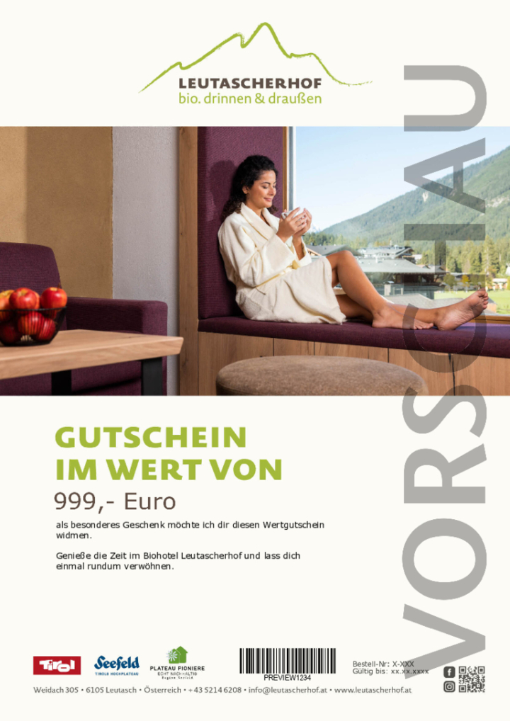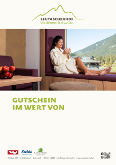 als besonderes Geschenk möchte ich dir diesen Wertgutschein widmen. <br><br>Genieße die Zeit im Biohotel Leutascherhof und lass dich einmal rundum verwöhnen.